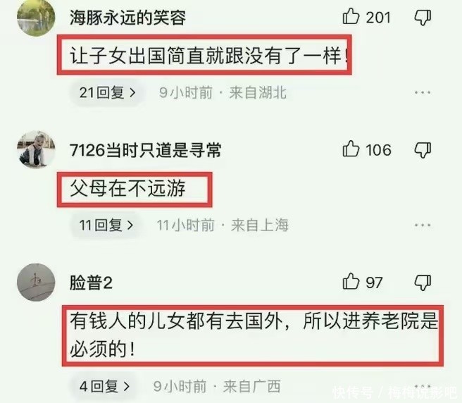 网友对于洋的女儿做法很是气愤,都说父母在就不远游,更何况已经94岁刚失去老伴的老人家,更是需要关心的时候。女儿就这么着急送他去养老院,老人家肯定心里非常难过。