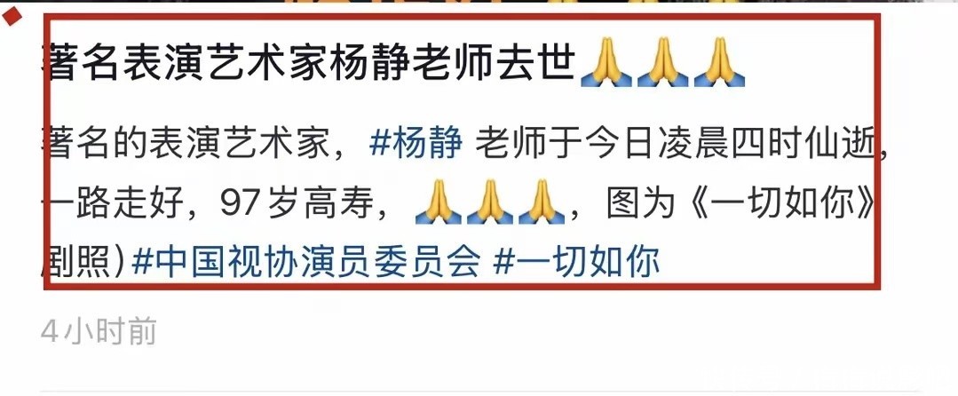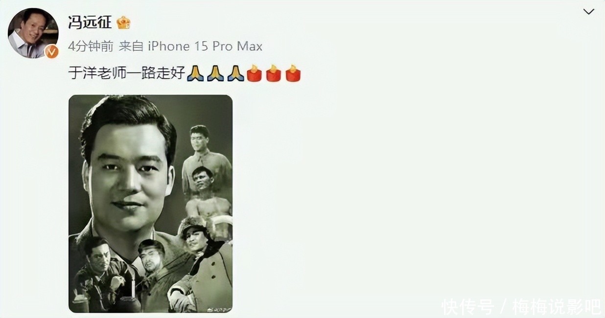 发出噩耗的是冯远征,大家这才知道于洋已经去世了,真的尾随了妻子杨静而去。